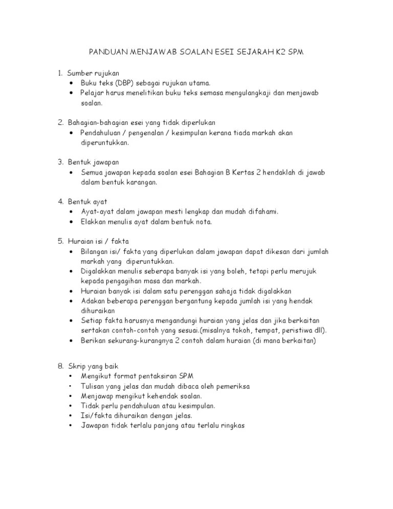 Contoh menulis jawapan esei sejarah spm soalan:
